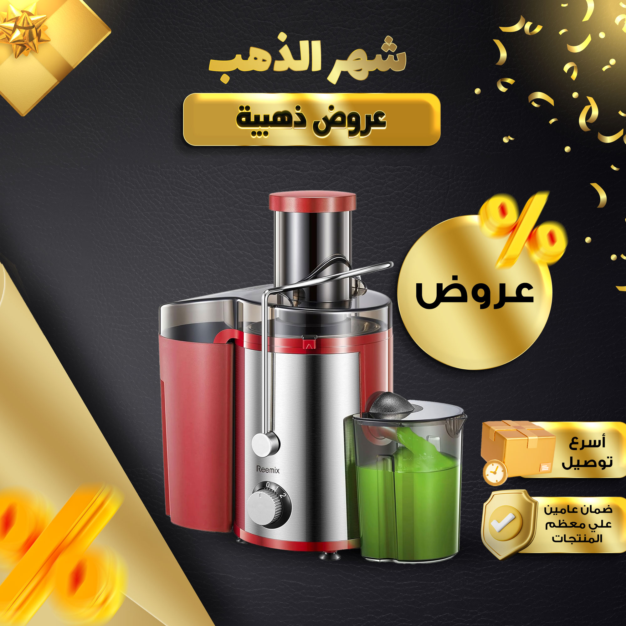 المميزات: محرك قوي 800 واط يعصر الفواكه والخضار بسرعة وكفاءة. خيارين للسرعة تناسب الفواكه اللينة والصلبة. فتحة عريضة 3 إنش تقلل وقت التقطيع والتحضير. شفرات تيتانيوم تقطع الفواكه القاسية بكل سهولة. فلتر ستانلس ستيل يفصل اللب عن العصير بطريقة مثالية. سعة العصير 500 مل تكفي استخدامك الشخصي. حاوية لب كبيرة 1800ml للعصر بكميات كبيرة بدون توقف. نظام أمان يمنع التشغيل إلا إذا كان الغطاء مُحكم الإغلاق. مصنوع من مواد آمنة للطعام عشان تستخدمه وانت مرتاح. تصميم مدمج يوفر لك مساحة في المطبخ. ـــــــــــــــــــــــــــــــــــــــــــــــــــــــــــــــــــــــــــــــــــــــــــــــــــــــــــــــــــــــــــــــــــــــــــــــــــــــــــ تفاصيل سريعة: الضمان: عامين. ماركة: دينيكس اللون: أحمر. الأبعاد: 34 × 30.4 × 19.7 سم. الوزن: 3.25 كجم. الطاقة: 800 واط. الجهد: 120 فولت. السعة: 500 مل للعصير – 1800 مل لحاوية اللب. المادة: ستانلس ستيل. خاصية الإغلاق التلقائي: نعم. ميزة إضافية: محرك قوي. ـــــــــــــــــــــــــــــــــــــــــــــــــــــــــــــــــــــــــــــــــــــــــــــــــــــــــــــــــــــــــــــــــــــــــــــــــــــــــــ محتويات العبوة: 1× عصارة Reemix 501. 1× إبريق عصير 500 مل. 1× حاوية لب 1800 مل. 1× غطاء أمان. 1× فرشاة تنظيف. 1× دليل الاستخدام. ـــــــــــــــــــــــــــــــــــــــــــــــــــــــــــــــــــــــــــــــــــــــــــــــــــــــــــــــــــــــــــــــــــــــــــــــــــــــــــ كيفية الاستخدام: تأكد أن الجهاز مطفأ قبل ما تبدأ. ثبت الغطاء وقفل الذراع عشان يشتغل الجهاز. حط الفواكه أو الخضار في الفتحة العريضة بدون تقطيع كثير. اختر السرعة المناسبة حسب نوع الفاكهة (البطيئة للطرية، والسريعة للقاسية). شغل الجهاز وانتظر ثواني لين يطلع العصير في الإبريق. بعد الانتهاء، فك الأجزاء ونظفها بالماء والصابون. خزن العصارة في مكان مناسب لين الاستخدام الجاي. Golden Friday تفاصيل سريعة: الضمان: عامين. وكيل الضمان: دينيكس اللون: أحمر. الأبعاد: 34 × 30.4 × 19.7 سم. الوزن: 3.25 كجم. الطاقة: 800 واط. الجهد: 120 فولت. السعة: 500 مل للعصير – 1800مل لحاوية اللب. المادة: ستانلس ستيل. خاصية الإغلاق التلقائي: نعم. ميزة إضافية: محرك قوي. ـــــــــــــــــــــــــــــــــــــــــــــــــــــــــــــــــــــــــــــــــــــــــــــــــــــــــــــــــــــــــــــــــــــــــــــــــــــــــــ محتويات العبوة: 1× عصارة Reemix 501. 1× إبريق عصير 500 مل. 1× حاوية لب 1800ml. 1× غطاء أمان. 1× فرشاة تنظيف. 1× دليل الاستخدام.