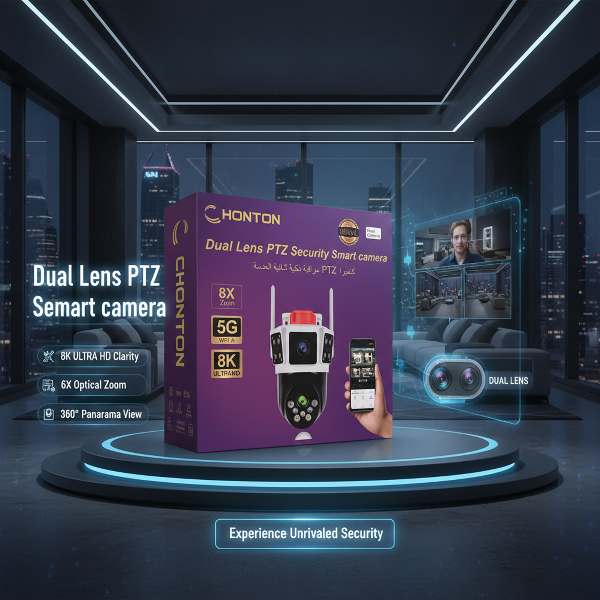 زوايا تسويقية: زاوية الدقة العالية: 8K UltraHD تعطي صورة واضحة ومفصلة زاوية الزوم القوي: تقريب بصري 6X يشوف كل التفاصيل الدقيقة زاوية الشبكة السريعة: تعمل على 5G Wi-Fi بدون تأخير زاوية العدسة : تغطي مساحة واسعة بدون زوايا ميتة زاوية المراقبة الذكية: تدعم PTZ للتحكم بالدوران والميل زاوية الثقة والجودة: منتج أصلي وموثوق على المدى الطويل زاوية التحكم عن بعد: تقدر تشوف وتتحكم بالكاميرا من جوالك زاوية التركيب السهل: سهل تركبها وتشبكها على الشبكة ـــــــــــــــــــــــــــــــــــــــــــــــــــــــــــــــــــــــــــــــــــــــــــــــــــــــــــــــــــــــــــــــــــــــــــــــــــــــــــ المميزات تدعم شريحة و واى فاى تصوير واضح جدًا بدقة 8K UltraHD تقريب بصري 6X لتفاصيل دقيقة تشتغل على شبكة 5G Wi-Fi سريعة عدستين مزدوجة لتغطية مساحة أكبر تدعم المراقبة الذكية PTZ للتحكم بالدوران والميل منتج أصلي وموثوق تغطي مساحة واسعة بعدستين مزدوجة وضوح 8K يعطي صورة ممتازة جدًا سهل تركبها وتشبكها على شبكة Wi-Fi تقدر تتحكم فيها عن بعد من جوالك ـــــــــــــــــــــــــــــــــــــــــــــــــــــــــــــــــــــــــــــــــــــــــــــــــــــــــــــــــــــــــــــــــــــــــــــــــــــــــــ مواصفات المنتج العلامة التجارية: HONTON الضمان: 6 شهور وكيل الضمان: دوزن الموديل: كاميرا مراقبة ذكية PTZ الدقة: 8K UltraHD العدسات: عدسة متحركة الزوم: تقريب بصري 6X الاتصال: شبكة 5G Wi-Fi الجودة: أصلي وموثوق ـــــــــــــــــــــــــــــــــــــــــــــــــــــــــــــــــــــــــــــــــــــــــــــــــــــــــــــــــــــــــــــــــــــــــــــــــــــــــــ محتويات المنتج 1 × كاميرا HONTON الذكية PTZ 1 × شاحن أو محول كهرباء 1 × دليل الاستخدام والتركيب 1 × أدوات التثبيت (مسامير وفيش) ـــــــــــــــــــــــــــــــــــــــــــــــــــــــــــــــــــــــــــــــــــــــــــــــــــــــــــــــــــــــــــــــــــــــــــــــــــــــــــ طريقة الاستخدام ركب الكاميرا في المكان المطلوب شبك الكاميرا بالكهرباء عشان تشتغل نزّل التطبيق الخاص بالكاميرا على جوالك شبكها على شبكة 5G Wi-Fi ابدأ المراقبة وتحكم بالكاميرا من التطبيق استخدم خاصية PTZ لتحريك الكاميرا وزوايا العرض المميزات تصوير واضح جدًا بدقة 8K UltraHD تقريب بصري 6X لتفاصيل دقيقة تشتغل على شبكة 5G Wi-Fi سريعة عدستين مزدوجة لتغطية مساحة أكبر تدعم المراقبة الذكية PTZ للتحكم بالدوران والميل منتج أصلي وموثوق تغطي مساحة واسعة بعدستين مزدوجة وضوح 8K يعطي صورة ممتازة جدًا سهل تركبها وتشبكها على شبكة Wi-Fi تقدر تتحكم فيها عن بعد من جوالك ـــــــــــــــــــــــــــــــــــــــــــــــــــــــــــــــــــــــــــــــــــــــــــــــــــــــــــــــــــــــــــــــــــــــــــــــــــــــــــ مواصفات المنتج العلامة التجارية: HONTON الضمان: 6 شهور وكيل الضمان: دوزن الموديل: كاميرا مراقبة ذكية PTZ الدقة: 8K UltraHD العدسات: عدسة متحركة الزوم: تقريب بصري 6X الاتصال: شبكة 5G Wi-Fi الجودة: أصلي وموثوق ـــــــــــــــــــــــــــــــــــــــــــــــــــــــــــــــــــــــــــــــــــــــــــــــــــــــــــــــــــــــــــــــــــــــــــــــــــــــــــ محتويات المنتج 1 × كاميرا HONTON الذكية PTZ 1 × شاحن أو محول كهرباء 1 × دليل الاستخدام والتركيب 1 × أدوات التثبيت (مسامير وفيش) ـــــــــــــــــــــــــــــــــــــــــــــــــــــــــــــــــــــــــــــــــــــــــــــــــــــــــــــــــــــــــــــــــــــــــــــــــــــــــــ طريقة الاستخدام ركب الكاميرا في المكان المطلوب شبك الكاميرا بالكهرباء عشان تشتغل نزّل التطبيق الخاص بالكاميرا على جوالك شبكها على شبكة 5G Wi-Fi ابدأ المراقبة وتحكم بالكاميرا من التطبيق 